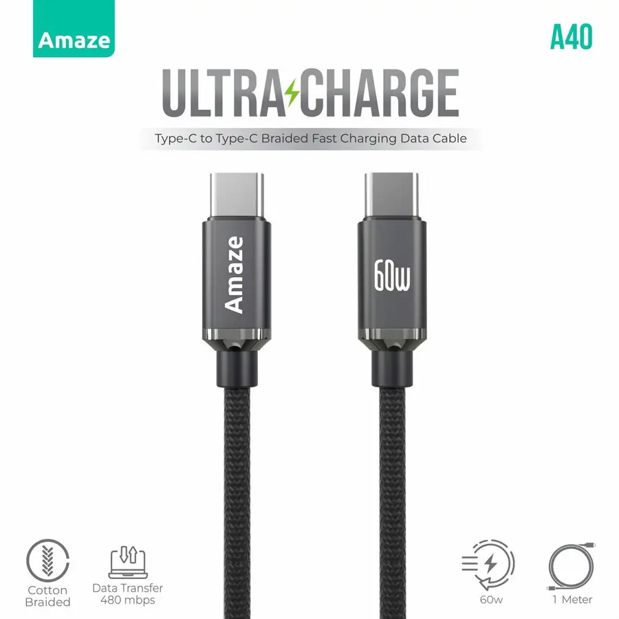Amaze Ultra Charge A40 Type-C to Type-C Cable  60W PD Fast Charging | PerfectDeal.pk