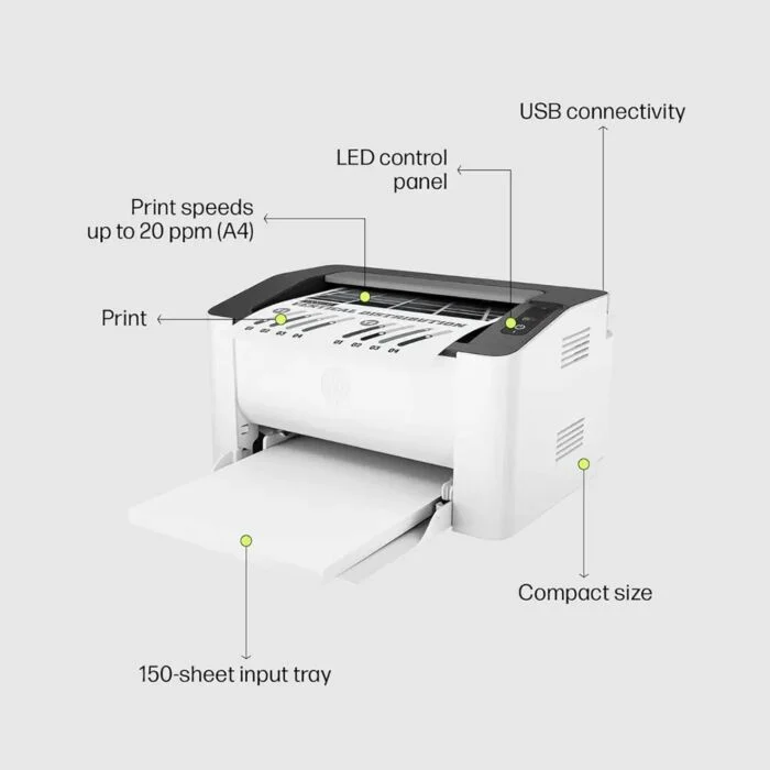 HP LaserJet 108A is a black & white printer with a good price that offers quality printing, efficiency, and dependable performance. The small and sturdy LaserJet series printer is a perfect option for a home office, a small business, school, or regular professional printing needs in Pakistan. Available at PerfectDeal.pk with 1 year warranty & attractive price.