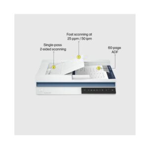 The HP ScanJet Pro 2600 F1 has two scanning modes, handling both delicate handlings and heavy workloads, a flatbed scanner for books photos ID cards, and fragile papers, along with an Automatic Document Feeder (ADF) that supports up to 60 sheets. This makes it one of the most efficient scanners in its class, by combining these three features, the resultant DP scanner that can be used smoothly anywhere, even in professional business environments.